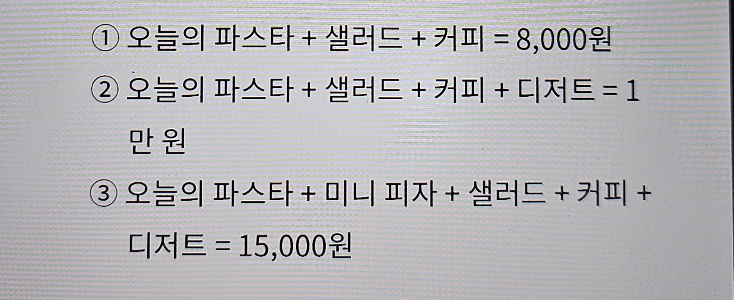 위의 (예 1)의 경우, 상대적으로 더 싸게 느껴지는 8천 원짜리 세트를 주문하는 것이 사람이 더 많다.