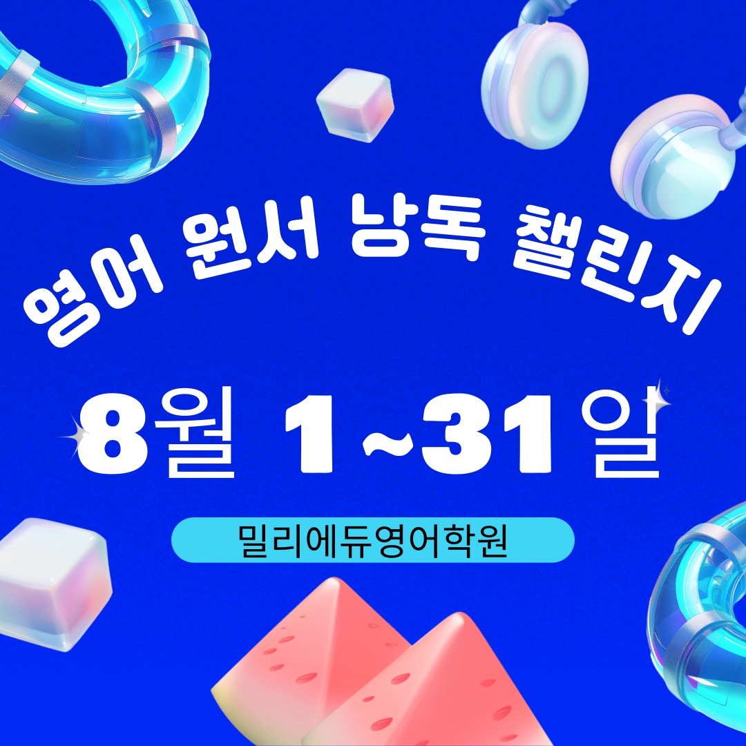 7월말 휴가를 마치고 8월을 맞이하며 뭔가 새로운 프로젝트를 시작하여 학원분위기를 새롭게 하고 싶었다. 그래서 평소 네이버밴드에서 진행하던 "성인원서낭독챌린지(매원낭)'를 학생들과도 하면 좋겠다는 생각이 들어 '8월 한달챌린지'를 시작했다. 이 프로젝트가 어떤 영향을 미칠지 두고 볼 일이다.