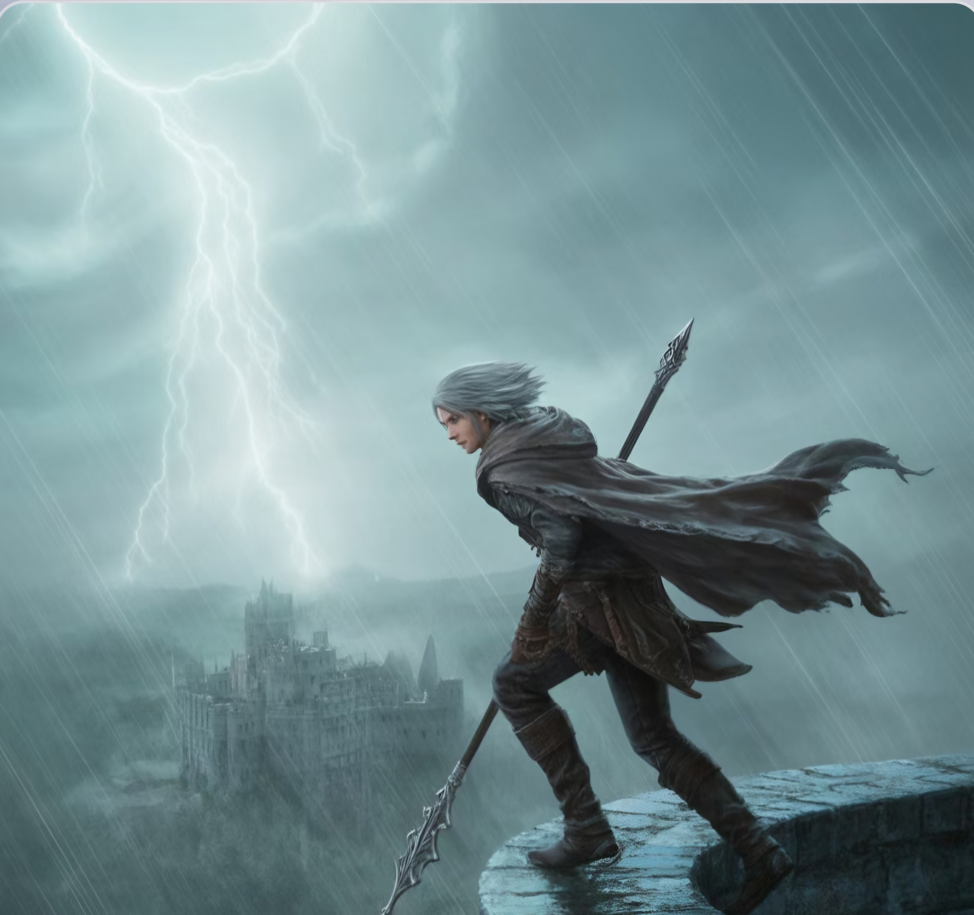 Violet는 세찬 바람과 비가 몰아치는 parapet에 발을 내딛는다. 앞서 출발한 Rhiannon의 뒷모습이 보이고, 정신을 집중하기 위해 나바레의 역사를 암송하며 걸음을 뗀다. 이 암송은 단순히 암기한 지식이 아니라, 집중력을 높이고 위험한 parapet을 통과하기 위한 일종의 생존 본능처럼 느껴진다.