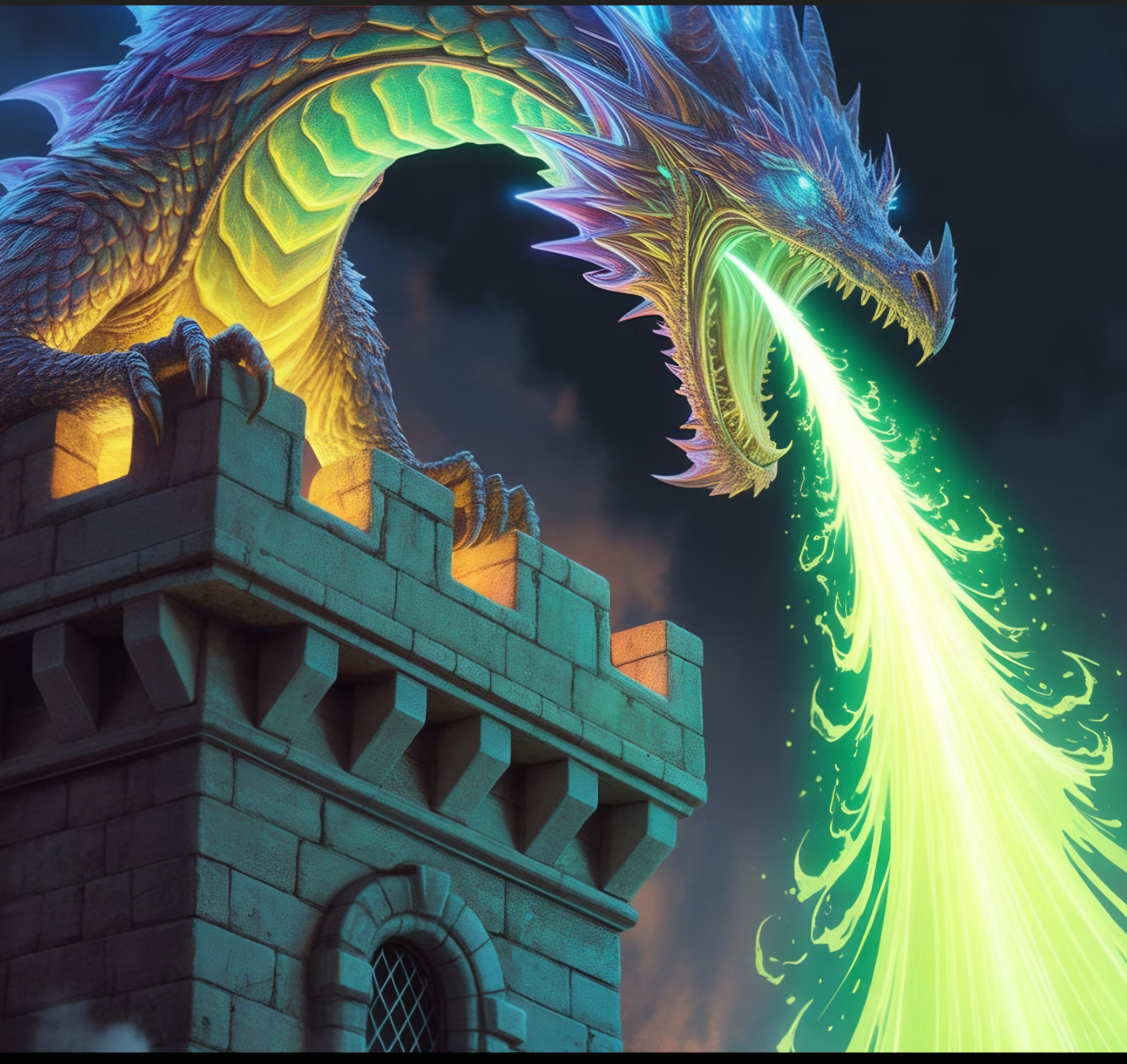 "겨우 parapet을 넘은 그녀 앞에 드래곤이 등장한다.