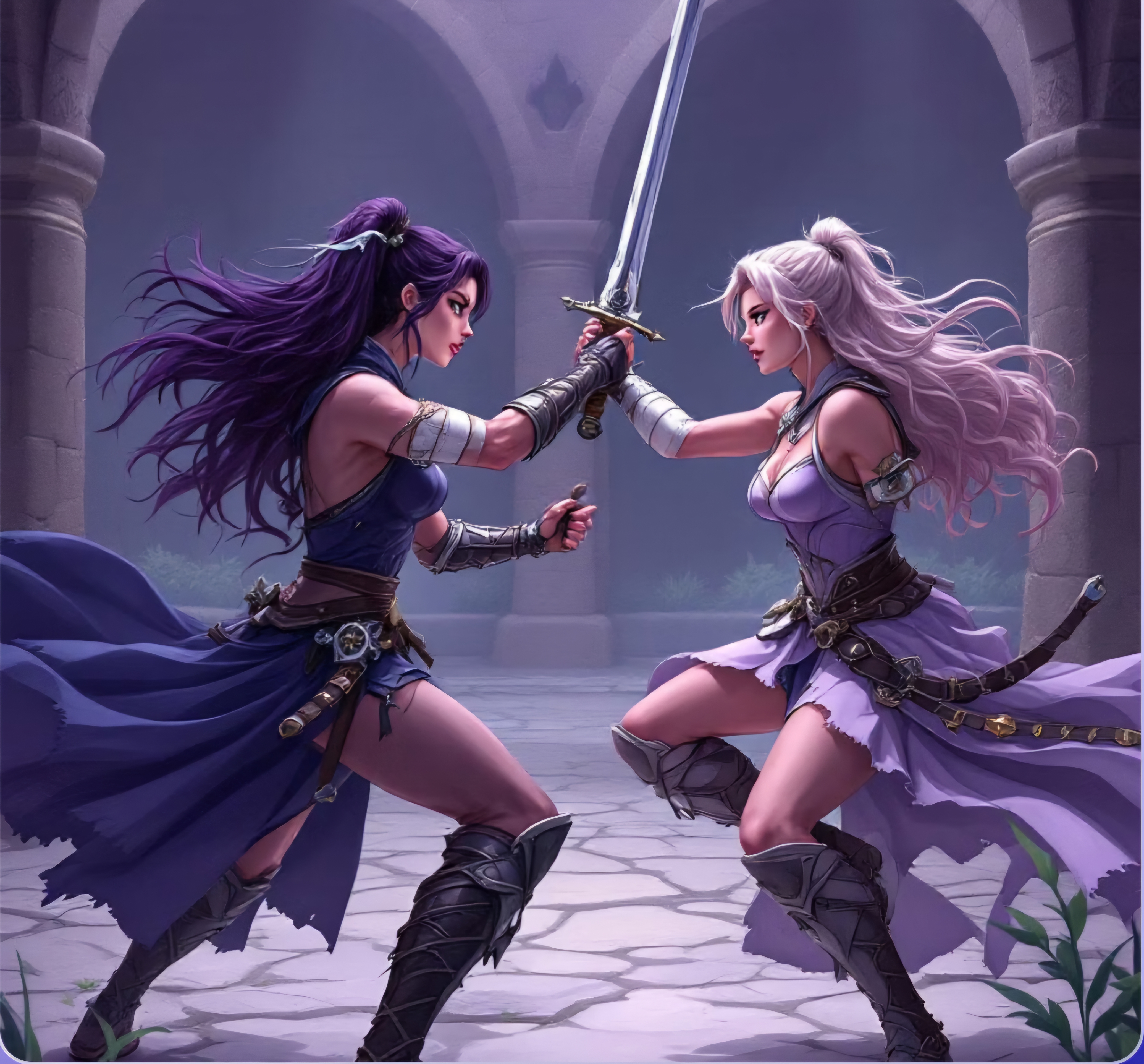 Violet의 절박한 외침 속에서, 이 전투는 단지 스파링이 아닌 '존재의 증명'임을 느낀다.
