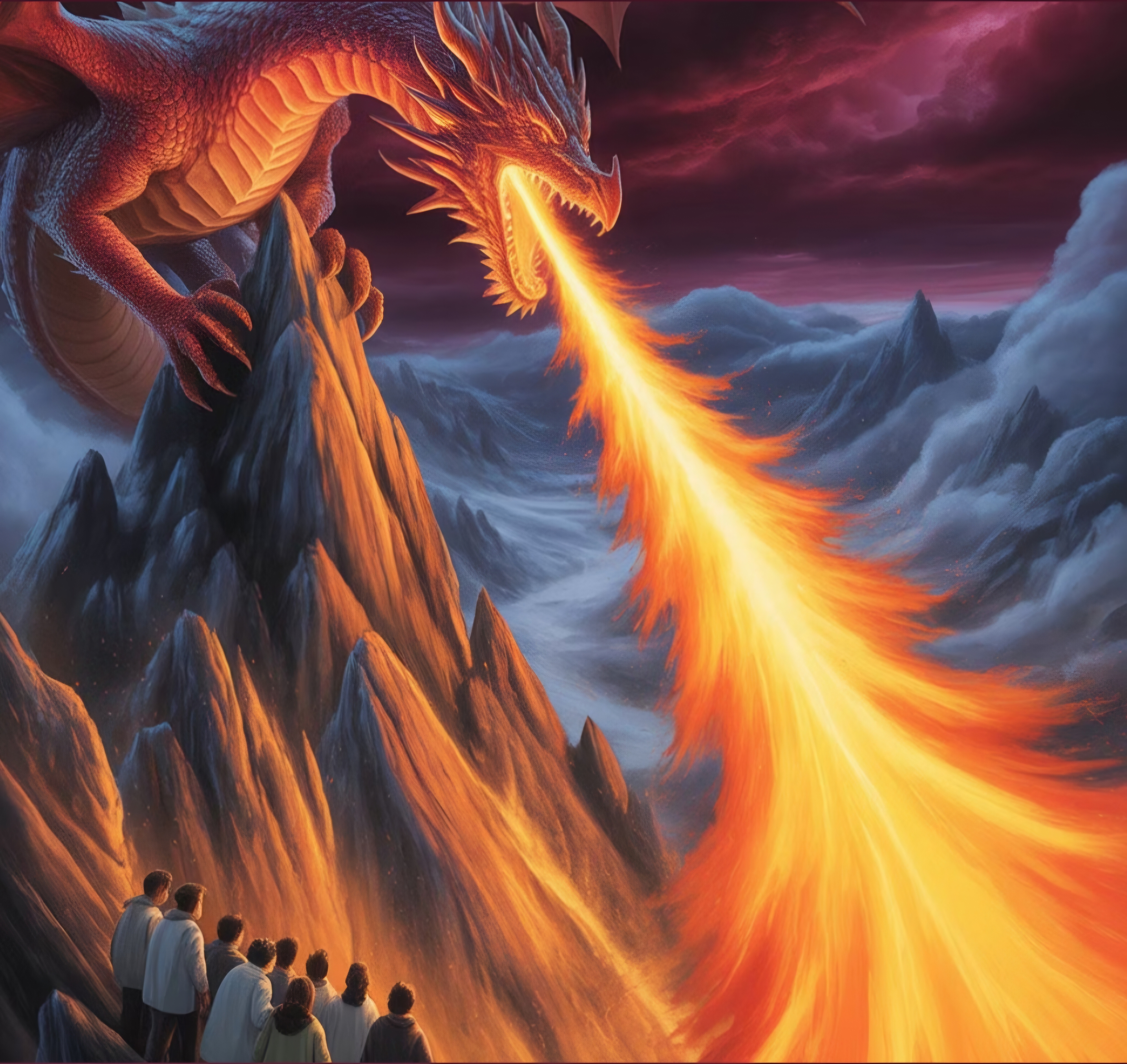 갑자기 레드 드래곤 한 마리가 앞으로 나서며 리애논의 바로 앞자리에 불을 뿜고,