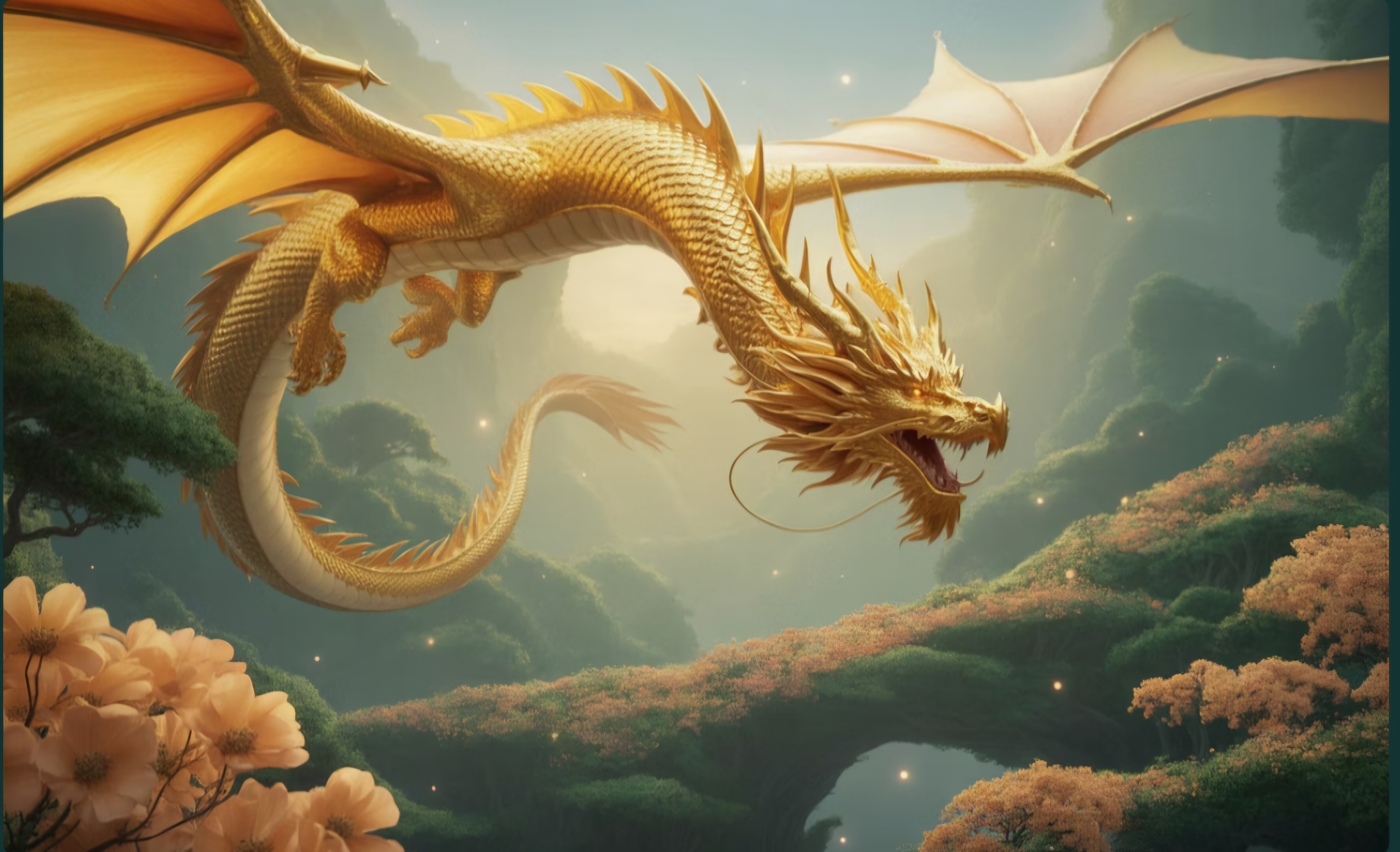한가득 펼쳐진 검은 용의 렐릭, 그 중심에서 금빛 용이 타오르다.