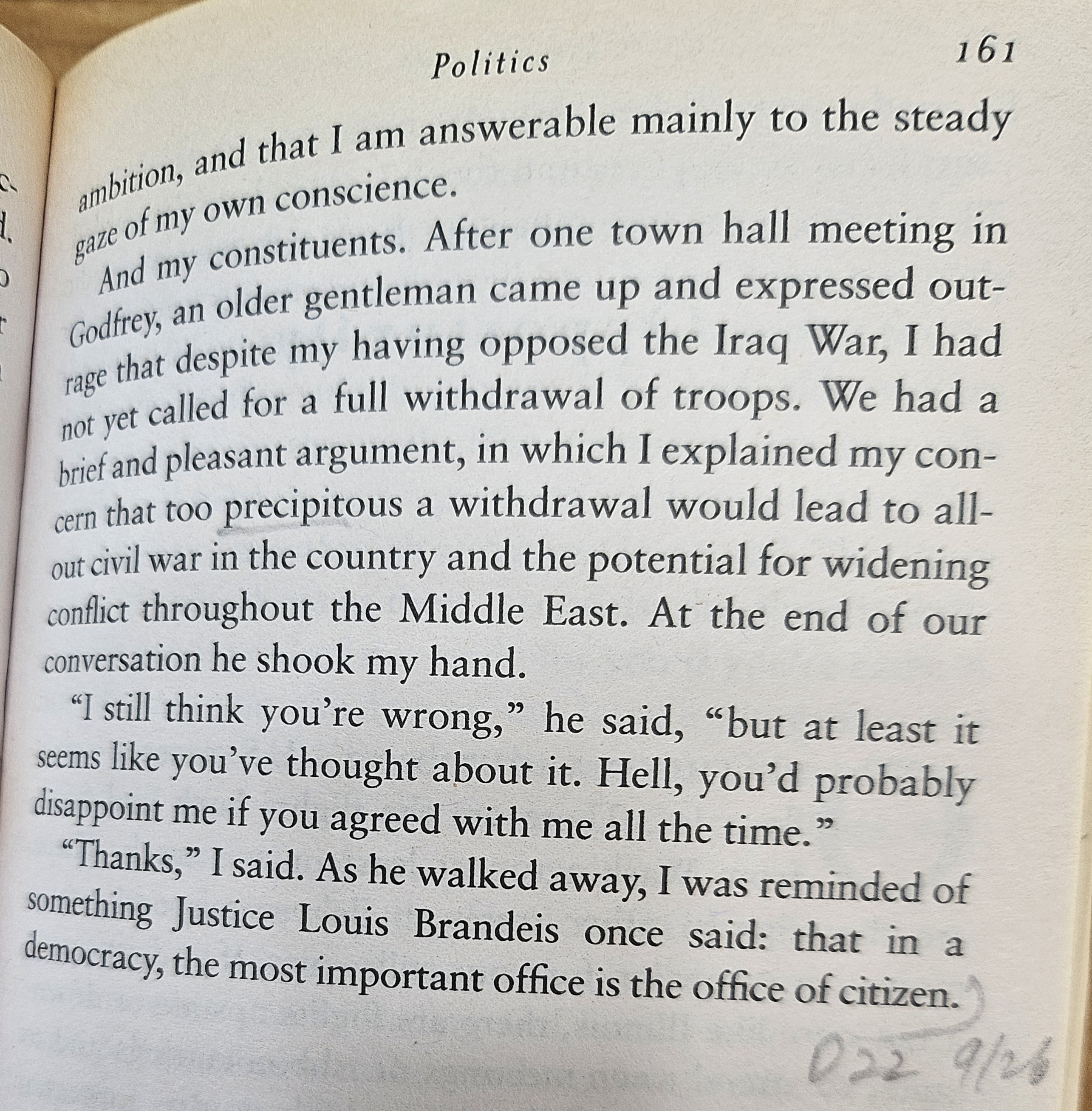 “Justice Lewis Brandeis once said: that in a democracy, the most important office is the office of citizen.”
