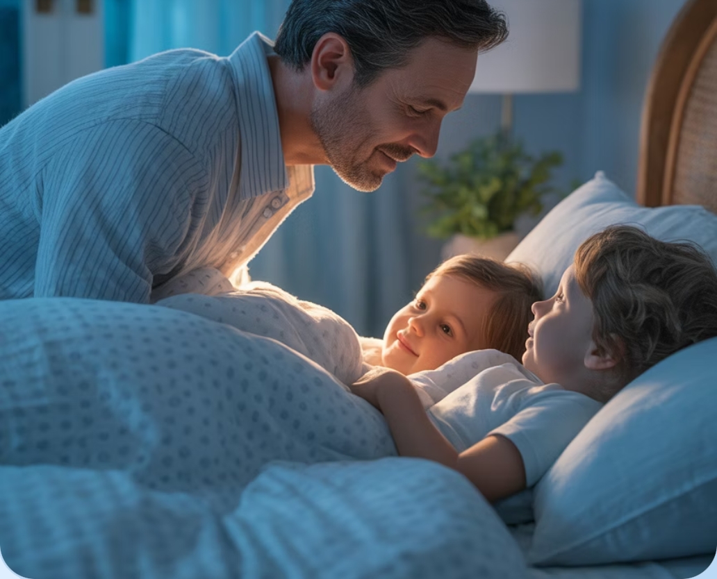돌아와 딸들을 품에 안으며 “천국의 한 조각”을 느낀다.