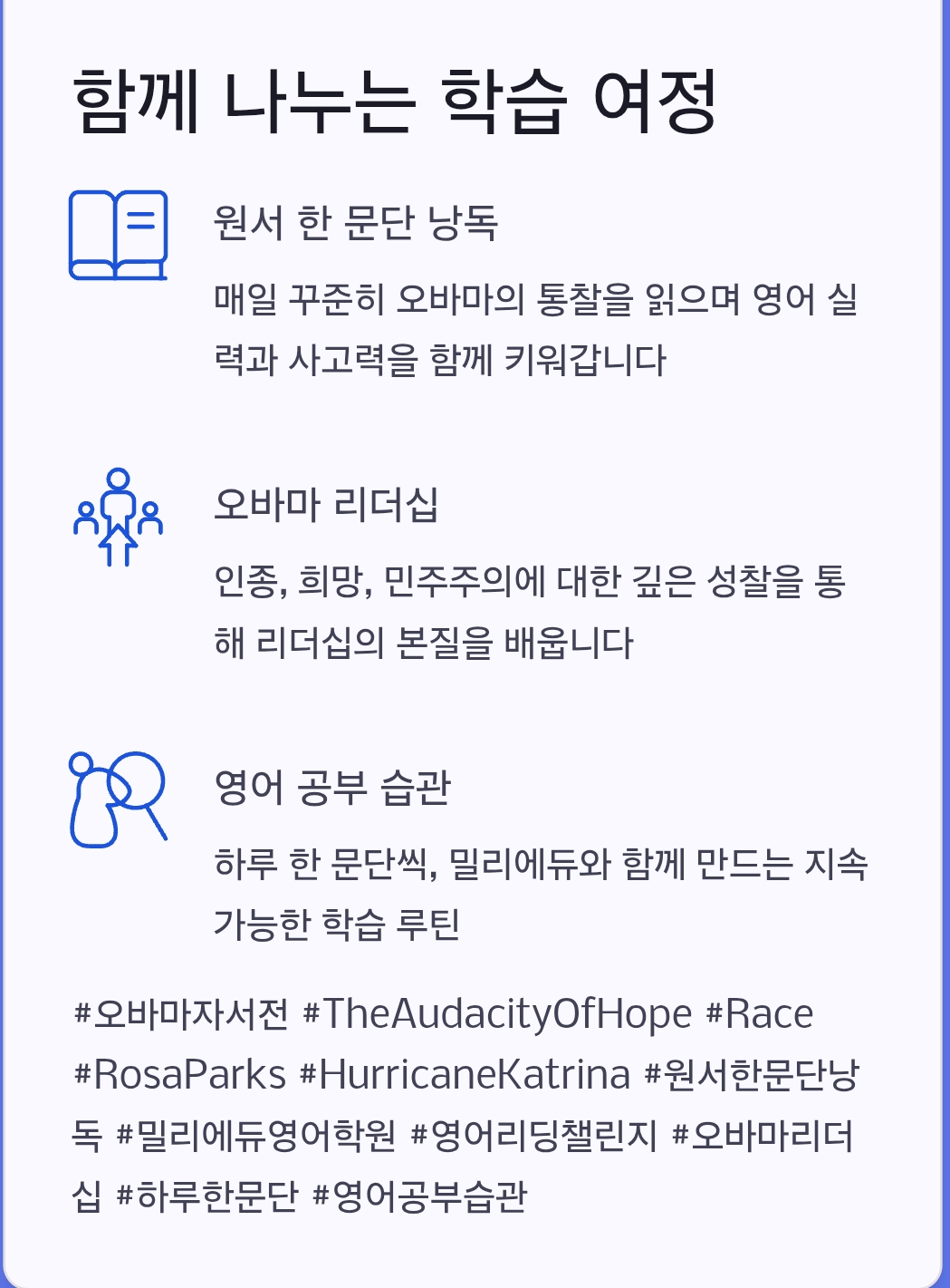 #오바마자서전 #TheAudacityOfHope #원서한문단낭독 #밀리에듀영어학원 #영어리딩챌린지