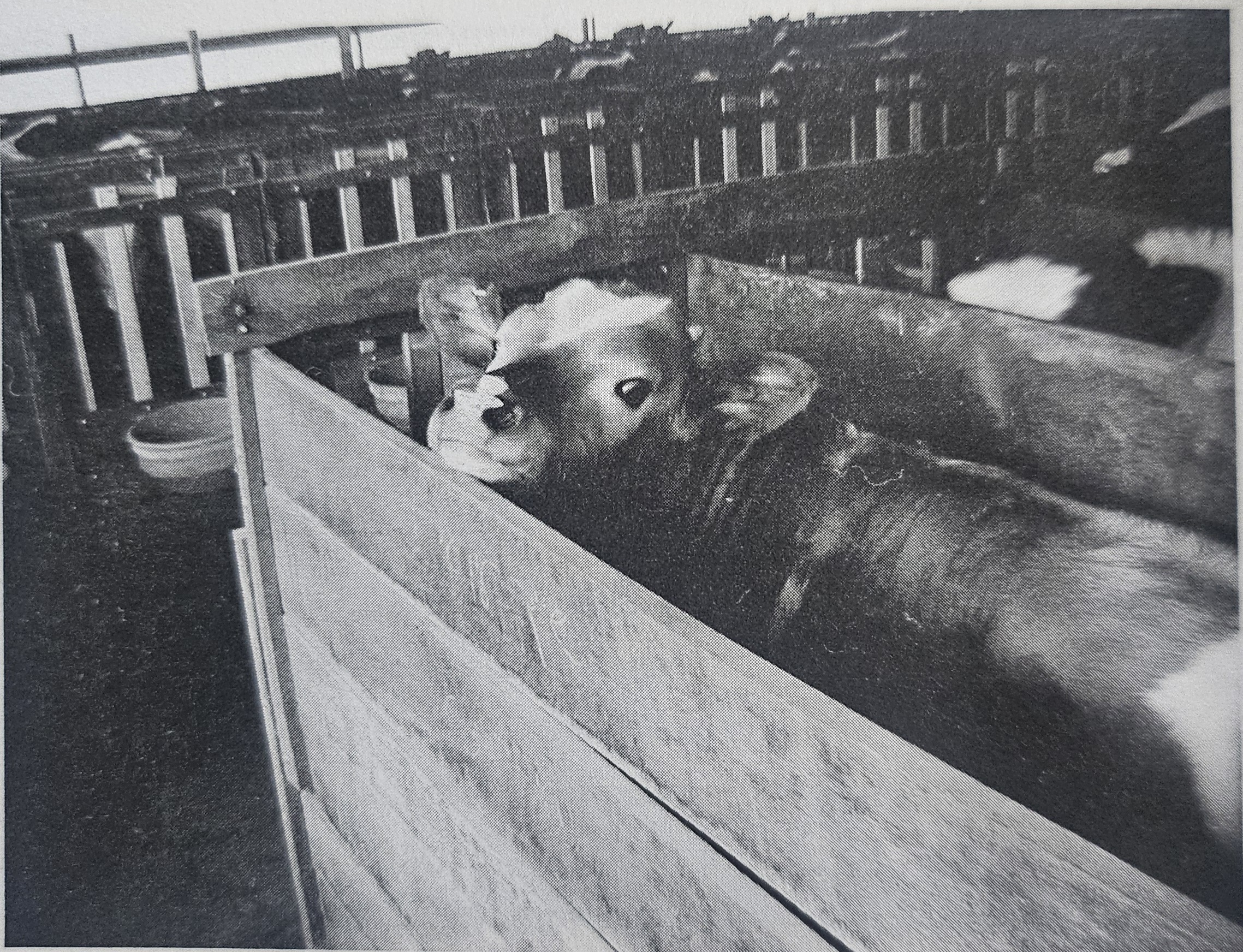 태어나자마자 송아지는 어미와 떼어 놓이고, 자기 몸집과 거의 다르지 않은 작은 우리에 갇힌다. 그곳에서 송아지는 평생을 보낸다 — 평균 약 넉 달 정도.